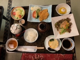 夕食です。お腹も減ったところに、とっても美味しそうです。いただきます!