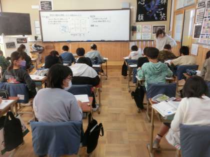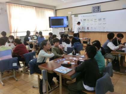 外国語では、以前の経験について英語で尋ねたり答えたりするやり取りを、ゲーム形式で行いました。とても和気あいあいとした雰囲気で、英語に親しみました。