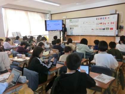 外国語では、いろいろな国を紹介しながら、その国では何ができるか、というやり取りを英語で行いました。観光や食事など、それぞれの国には特徴があります。英語に親しみながら、他国の文化にも触れることができました。