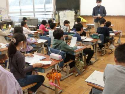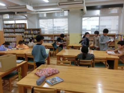 図書館では、本に親しみました。学校司書の先生からの読聞かせもありました。