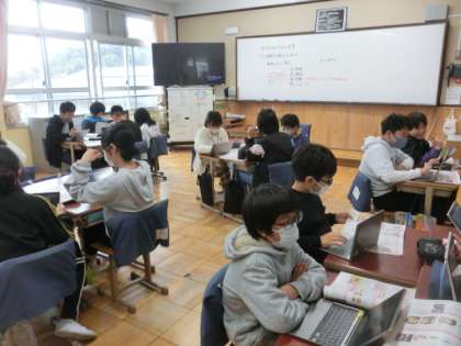 家庭科では、今度行う調理実習の調理計画を立てました。効率を考えながらも、楽しく話合いました。