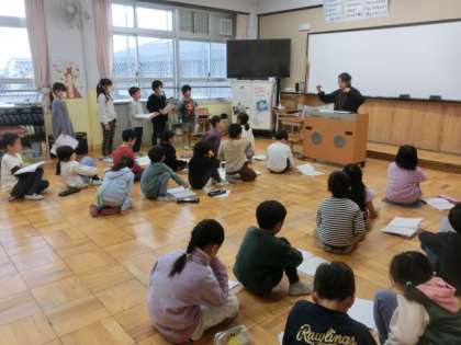 学習発表会に向けて、場面ごとのグループに分かれて練習です。表現の仕方を考え、少しずつ向上させています。
