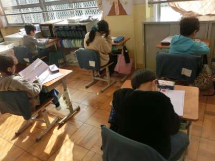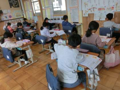 国語のテストに取り組みました。