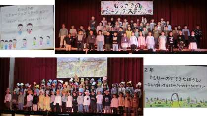 1年生『むらさきの☆ミュージック・ステーション☆』これまで音楽科で学習してきた曲を、歌や演奏、おどりなどで発表しました。