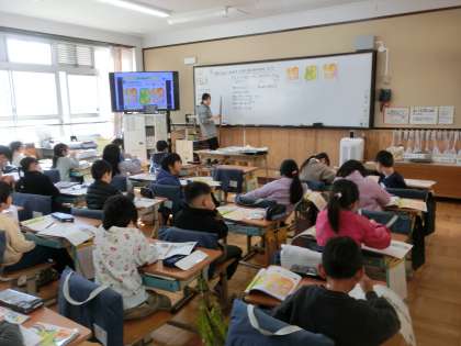 音楽科では、鑑賞の学習です。「きょくがあらわす ようすを おもいうかべながら きこう」をめあてに、音楽に耳を傾けました。題名からもイメージができていましたよ。