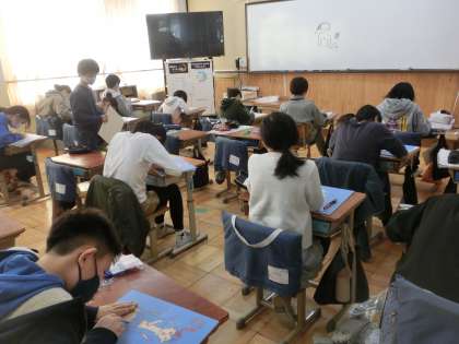 図工では、木版画に取り組んでいます。描画した絵の線を、大切に、丁寧に彫り進めています。思い出の詰まったシーンが、版画になっていきます。