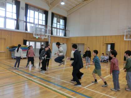 運動委員会の企画で、大なわ大会が開催されています。今日は5年生が登場しました。高学年はさすがのとびっぷりとチームワークで、素晴らしい記録が生まれています。明日の6年生も楽しみです。運動委員のみなさん、お世話になります。ありがとう。
