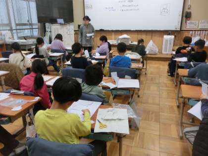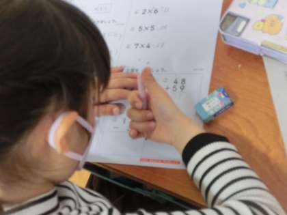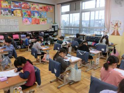 図画工作科では、紙版画に取り組んでいます。刷り上がりをイメージしながら、版を作成しています。算数科では学期まとめのテストを行いました。