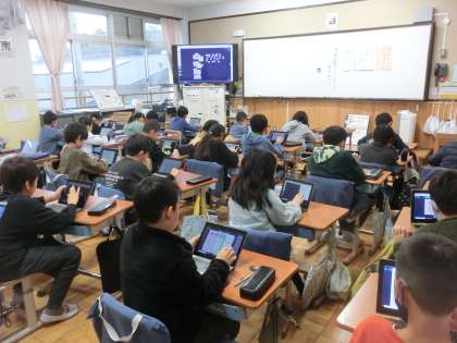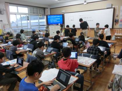 国語科では「三年とうげ」の学習のまとめです。民話の紹介文を読み合い、感想交流をしました。