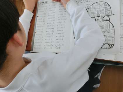 算数科では、かけ算の練習問題で学習の定着に取り組んでいます。