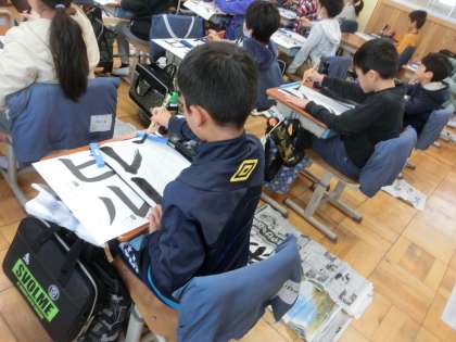 書写では「ビル」と書きました。カタカナのはらいやはねを丁寧に練習しました。