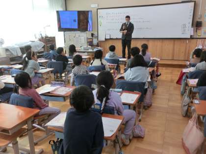 音楽科では、「楽器となよくなろう」ということで鑑賞の学習をしました。耳を澄ますと、色々な音が聞こえます。今日はウッドブロックも実際に触りました。