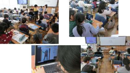 学期末。学習したことの定着を図り、プリントやドリル、九九のおさらいなどに取り組んでいます。また、版画のふり返りを、端末を使ってロイロノートにまとめ、交流します。2年生もできることがたくさん増え、成長ですね。