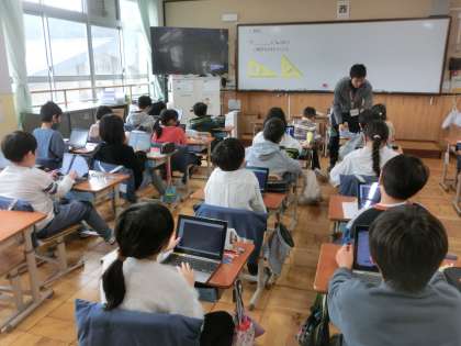 算数科では、ロイロノートを用いて三角形のなかまわけをしました。これまでの学習を生かして考えています。