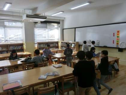 国語科「おにごっこ」では、大事な言葉に気を付けながら読み、おにごっこのおもしろさを見つけました。また図書館では本に親しみました。借りる本を選ぶときにはとてもウキウキした様子が見られました。