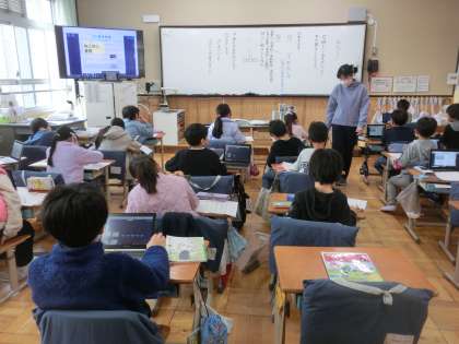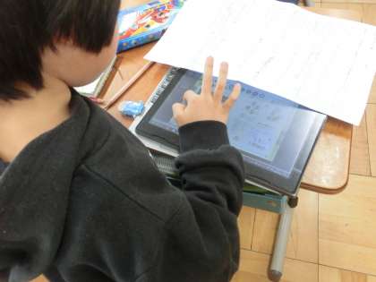 国語科「おにごっこ」では、いろいろな遊びの中から自分が説明したい遊びを決めて調べ、お友だちに紹介・説明するための準備をしています。どんなふうに説明すればわかりやすいかを考えます。