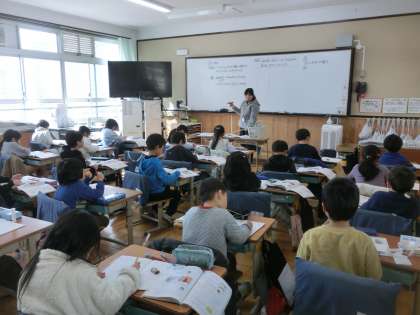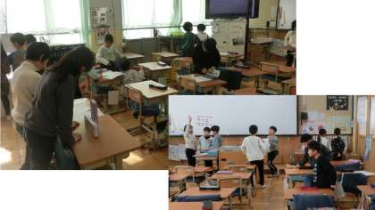生活科ではまちたんけんでお話しするときのための練習です。ペアやグループで、上手に話せているかを確かめあいました。