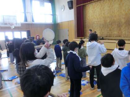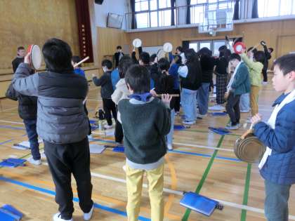 地域の皆様にお世話になり、やすらい祭の音楽を練習しました。笛や鐘、太鼓が上手になってきました。