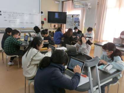 理科では、地球上で水がどのように生物と関わってきたかを予想し、調べました。生物と地球環境の関りには壮大な物語が感じられます。