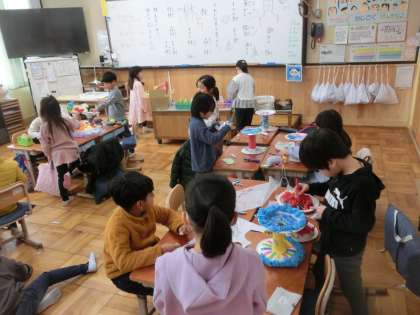 また図画工作科「紙ざらコロコロ」も、完成が近づいています。