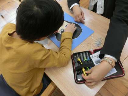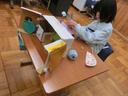 図画工作科で、版画や段ボールハウスづくりに取り組みました。楽しみながら活動し、個性あふれる作品ができています。