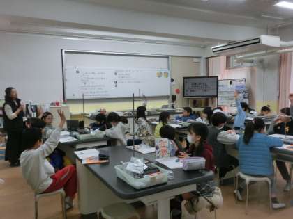 理科では、水を熱し続けた時の温度や様子の変化について予想し、確かめました。これまでの学習を想起し、しっかり考えることができました。
