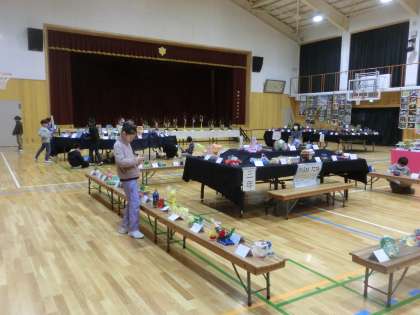 図画工作科では作品展の鑑賞を行いました。他学年の作品にも興味津々。今後に生かせそうです。