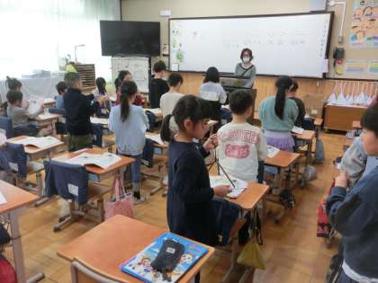 音楽科では「こいぬのマーチ」の演奏を楽しみました。トライアングルや鈴、カスタネットなどを用いて、たがいの楽器の音をききながら演奏しました。