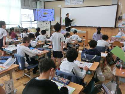生活科ではこれまでの成長をすごろくに表しています。忘れ物をしてスタートに戻る、などとても工夫が凝らされていて、振り返りながら遊ぶのが楽しみです。