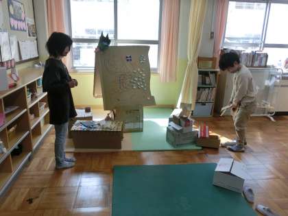 3組は休み時間に3組ハウスなど、自分たちで作ったもので遊びました。自分たちで作ったもので遊ぶのは楽しいものです。