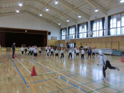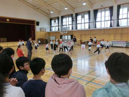 昼休みにはドッジボール大会、低学年の男の子の対戦です。6年生や5年生もたくさん応援に来てくれました。先輩たちがとても盛り上げてくれました。すてきです!