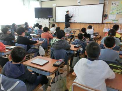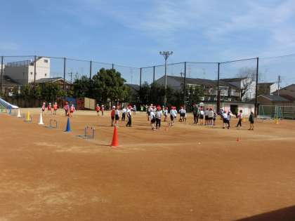 体育科ではサッカーの学習に向けて、ルールや学習の流れを確認。午後は両クラス合同で、サッカーに取り組みました。
