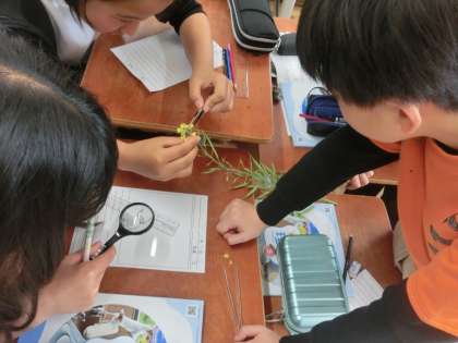 理科では、アブラナを摘んでよく観察し、花のつくりを調べました。