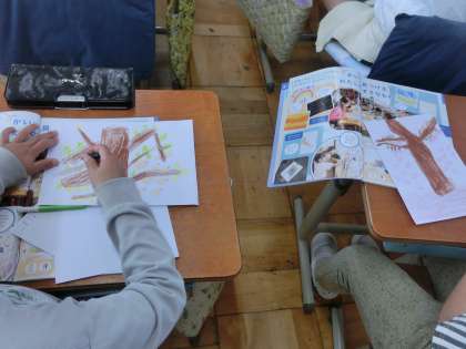 かいてみつける わたしのすてきな「春」ということで、校内で春を感じるところをたくさんみつけ、気に入ったものを絵に表現しました。いろんな春があって素敵です。