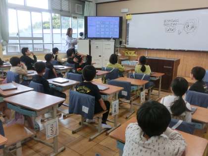 総合的な学習の時間には、ロイロノートを使って意見交流をします。お互いの考えを確かめながら、学びに向かいます。