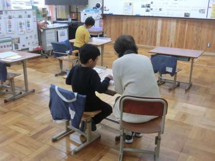学年ごとに交流学級での学習や、教室での学習を行い、ばらばらに活動することもあります。時には教室が少ない人数の時もありますが、やるべき取組に集中して学習します。