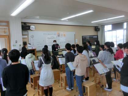 音楽科では「ペガサス」を、明るく、ひびきのある声で歌いました。発声練習の時から気分をあげています。