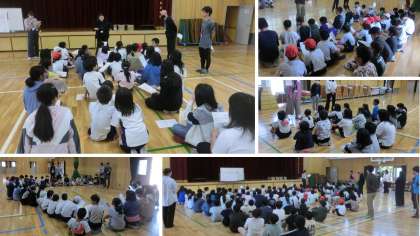 中間休みに、部活動の開講式を行いました。参加したみなさんの表情には、期待ややる気があふれていました。