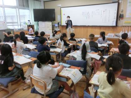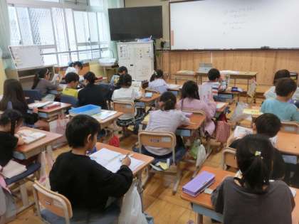 国語科では漢字の学習に丁寧に取り組んでいます。また「ともだちはどこかな」の単元では、大事なことを落とさずに聞くこと、メモを取ることの学習をしました。