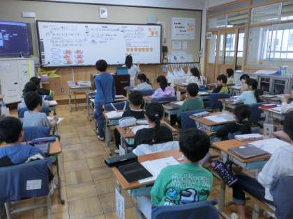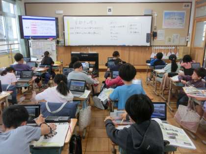 社会科では京都市の様子の学習です。今日は、京都駅の周りの様子について、地図や端末を使って調べました。