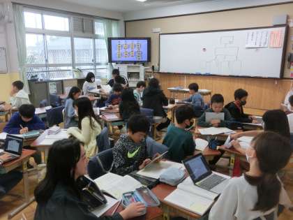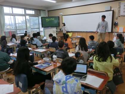 国語科「きいて、きいて、きいてみよう」の学習では、インタビューをして友だちのことを知り、その内容をクイズにしていきます。活動を通して、聞き方、メモの取り方、表現の仕方などを身につけていきます。クイズづくりやクイズの発表などの活動はとても楽しんで主体的に取り組む様子が見られます。
