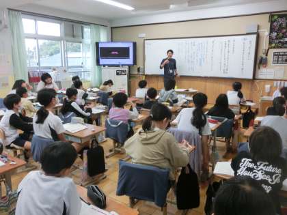国語科「笑うから楽しい」の学習では、筆者の主張や事例について自分の考えをもちながら読み進めます。内容に納得できるかできないかを考え、その根拠を明確にして意見交流をします。