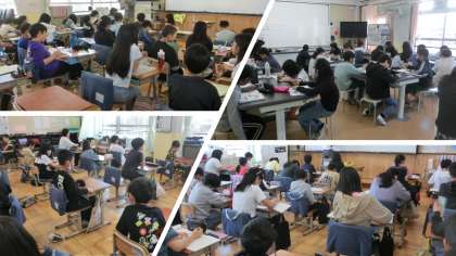 来週には1年生を迎える会を控え、1年生も校歌や言葉などを一生懸命練習しています。