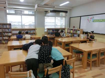 図書館で本に親しみました。それぞれに本の世界に入り、読書を楽しみました。