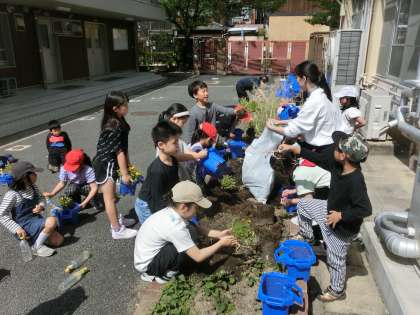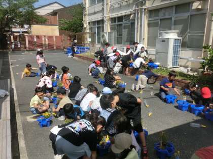 野菜を育てるため、1年生の時に使っていた植木鉢の中を入れ替えました。しっかりお話を聞き見通しをもって取り組める人が多く、感心しました。