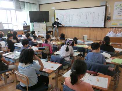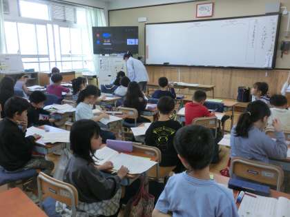 国語科では「たんぽぽのちえ」の学習です。お話をよく読んで、たんぽぽのたくさんのちえを読み取っています。