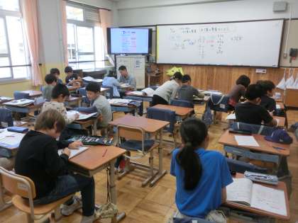 算数科は「1けたでわるわり算の筆算」を学習しています。これまでの学習を生かし、わり算の筆算の考え方を身につけていきます。この先の算数・数学にも関わってきますね。