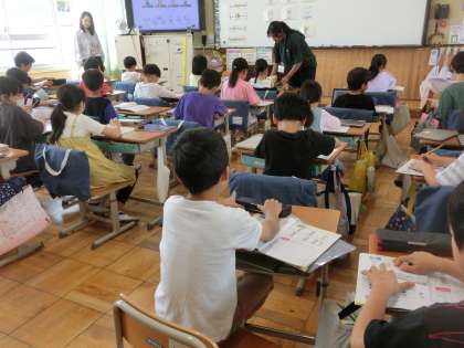 外国語活動で、あいさつの仕方を学習しました。気持ちを表すときには、声のトーンにも表れそうですね。