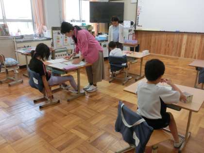 それぞれの課題に取り組んでいる時間の様子です。交流学級で学習しているお友だちもいます。一人ひとりが自分のやるべきことにしっかり取り組むことができていて、素敵です。