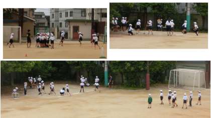 体育科は走り幅跳びの学習です。安全に注意しながら声をかけあって記録に挑戦。役割分担もしっかりと行います。